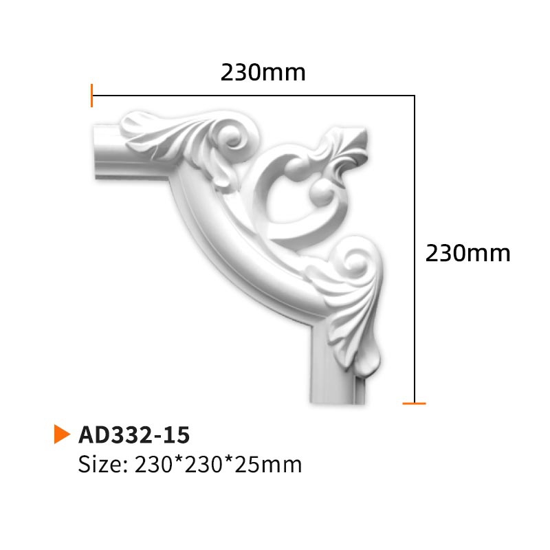 Everwall AD332-15 decorative PU furniture decorative trim are made to match flat plain molding AD332 to create beautiful wall frames, mirror frames or picture frames. Moulding Corners allow you to create wainscoting or frames on the walls and ceilings. As a result, Molding corner and Plain Panel Moulding offer endless combinations to create charming spaces.