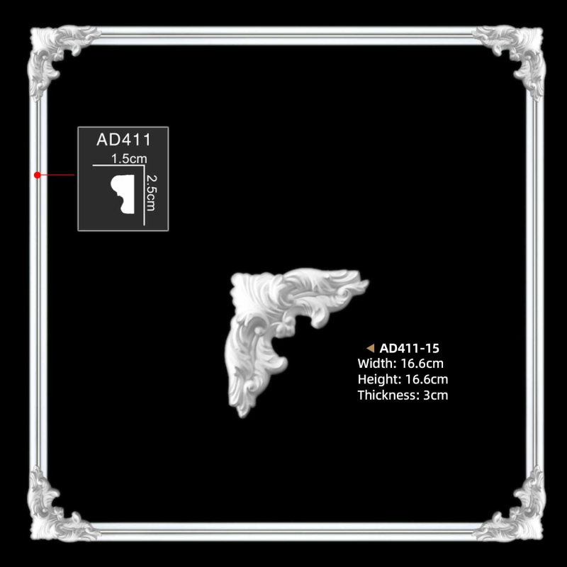Everwall AD411-15 decorative PU furniture restoration corner applique are made to match flat plain molding AD411 to create beautiful wall frames, mirror frames or picture frames. Moulding Corners allow you to create wainscoting or frames on the walls and ceilings. As a result, Molding corner and Plain Panel Moulding offer endless combinations to create charming spaces.