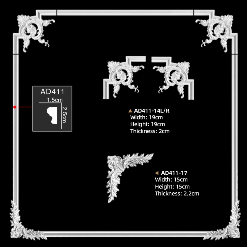 Everwall AD411-17 decorative vintage furniture decorative corner are made to match flat plain molding AD411 to create beautiful wall frames, mirror frames or picture frames. Moulding Corners allow you to create wainscoting or frames on the walls and ceilings. As a result, Molding corner and Plain Panel Moulding offer endless combinations to create charming spaces.