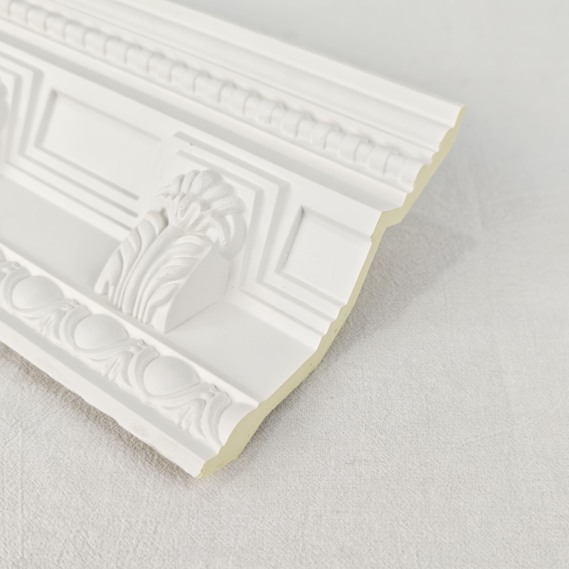● PU Cornice Moldings is an elegant, fashionable, decorative material. It is mainly made of high-quality polyurethane material, making it stronger and lighter than gypsum powder eaves. This high-quality material can be used for interior decoration in high-end buildings such as hotels, restaurants, shopping malls, theaters, dance halls, cinemas, stations, auditoriums, offices, living rooms, commercial buildings, and industrial or residential buildings.