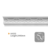 AA355 Polyurethane Classical Interior Crown Molding, 113mm breadth, 2440mm long for interior ceiling decoration.