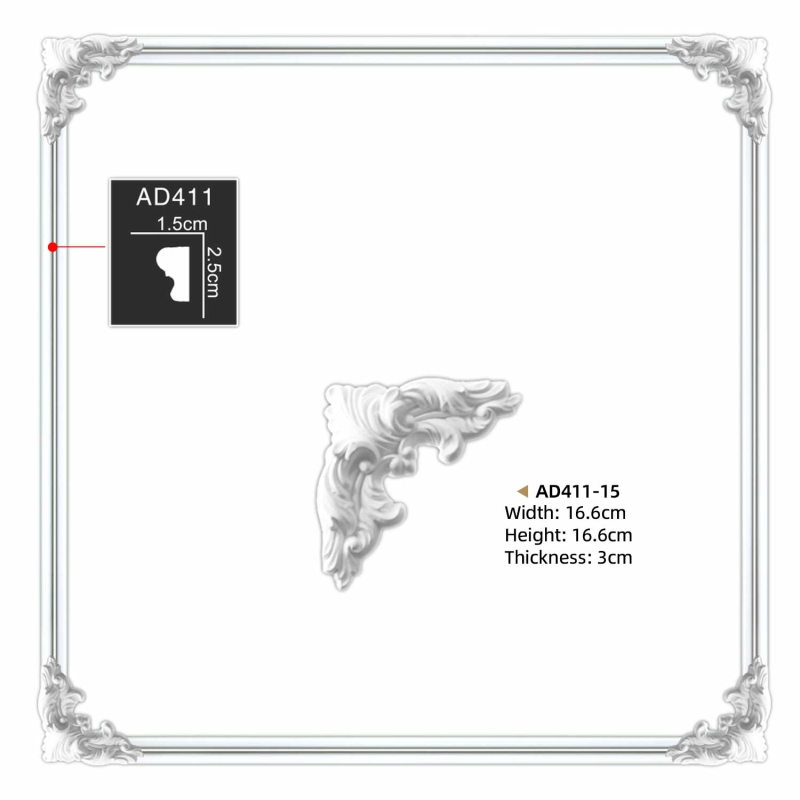 Everwall AD411-15 decorative PU furniture restoration corner applique are made to match flat plain molding AD411 to create beautiful wall frames, mirror frames or picture frames. Moulding Corners allow you to create wainscoting or frames on the walls and ceilings. As a result, Molding corner and Plain Panel Moulding offer endless combinations to create charming spaces.